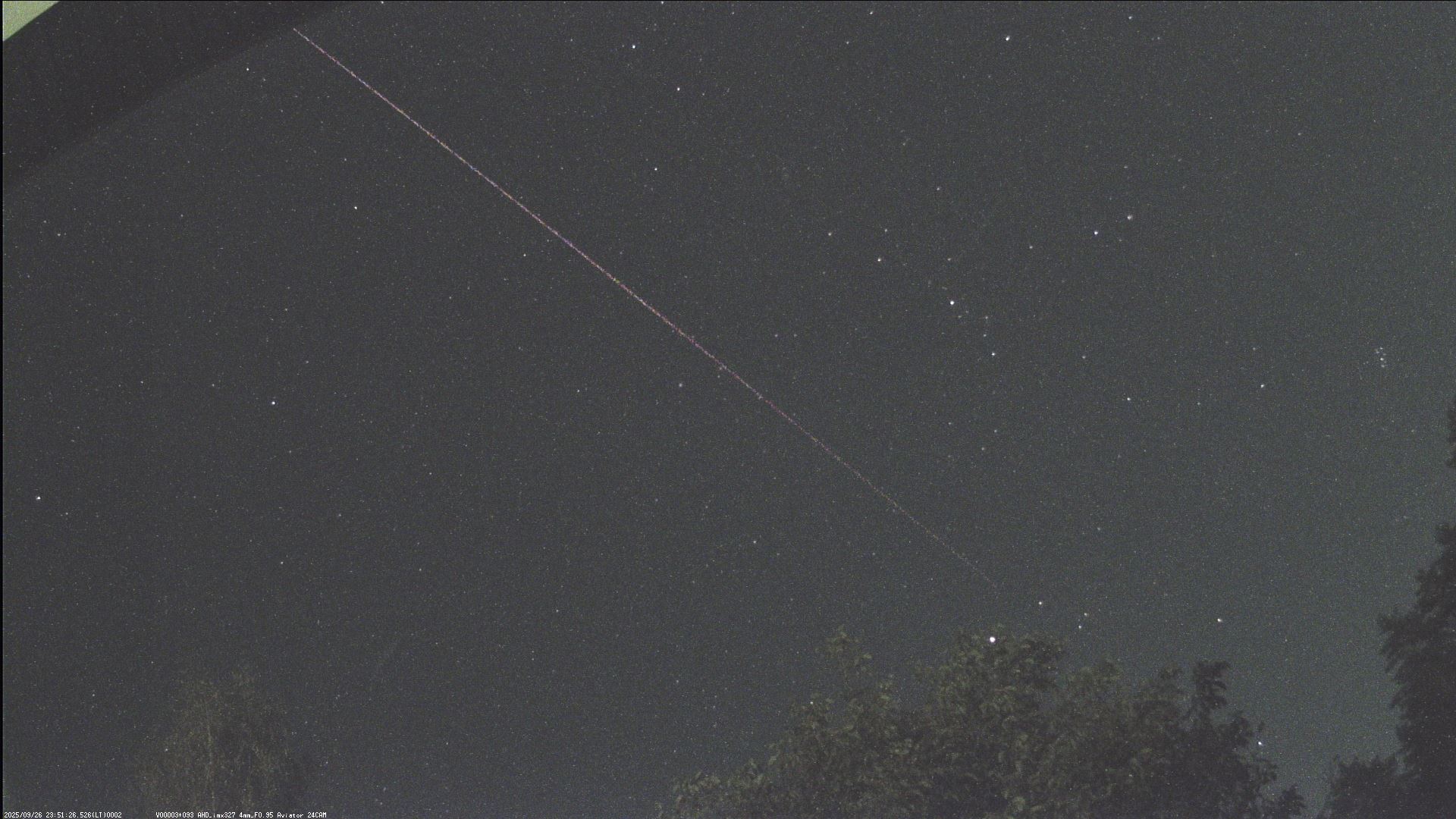 К сожалению,моя патрульная фотокамера засняла только начало полета болида на стыке Пегаса и Рыб. Яркость этого участка траектории около +1 или 0 величины, т.е. видно очень слабо, при потоковом просмотре снимков можно и не заметить.