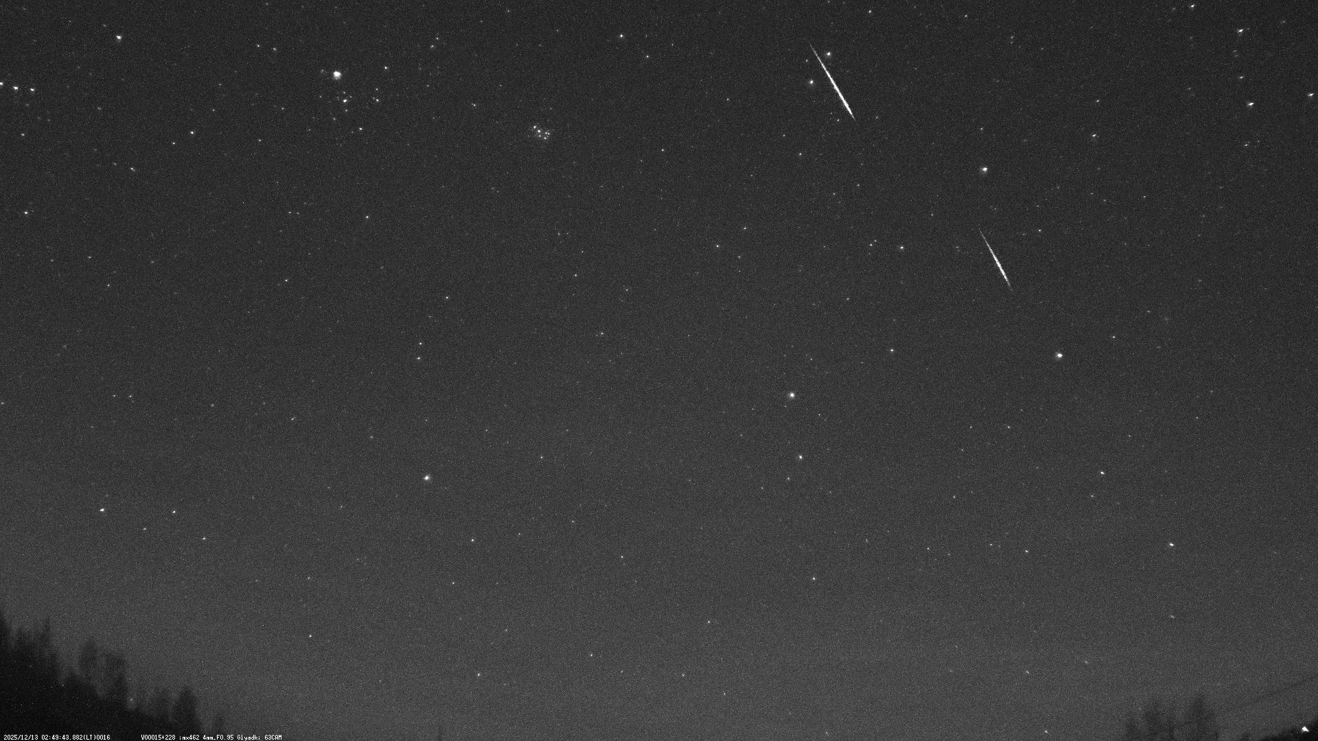 На максимум Геминид погоды не было, но была хорошая ясная ночь 12/13 декабря накануне. Несмотря на то, что это был еще не максимум, благодаря почти безлунной ночи был установлен новый рекорд по количеству собранных базисных метеоров за одну ночь - 1109 (!), из них Геминиды - 838. Некоторые камеры собрали по 600+ метеоров.