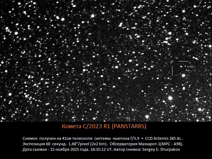 C/2023 R1(PANSTARRS) на небе вечером 15 ноября 2025. Обсерватория Маззарот-1 , МРС А98.
