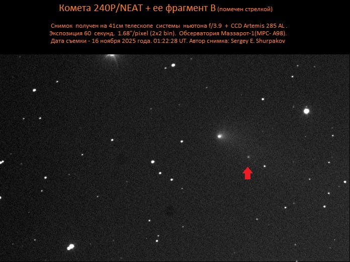 240P/NEAT + фрагмент В... на небе вечером 15 ноября 2025. Обсерватория Маззарот-1 , МРС А98.