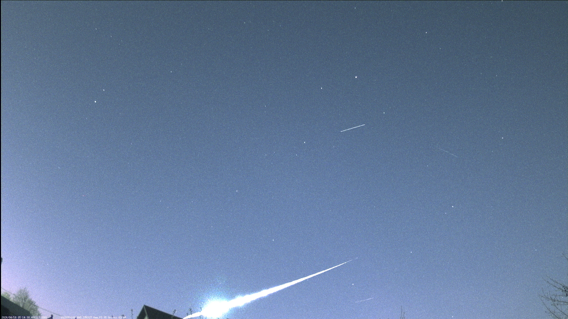 Утром 14 апреля в поле зрения видеокамеры "влетел" красивый болид, предположительно, спорадический. Видeo: https://youtu.be/2PP7NunN9Bo