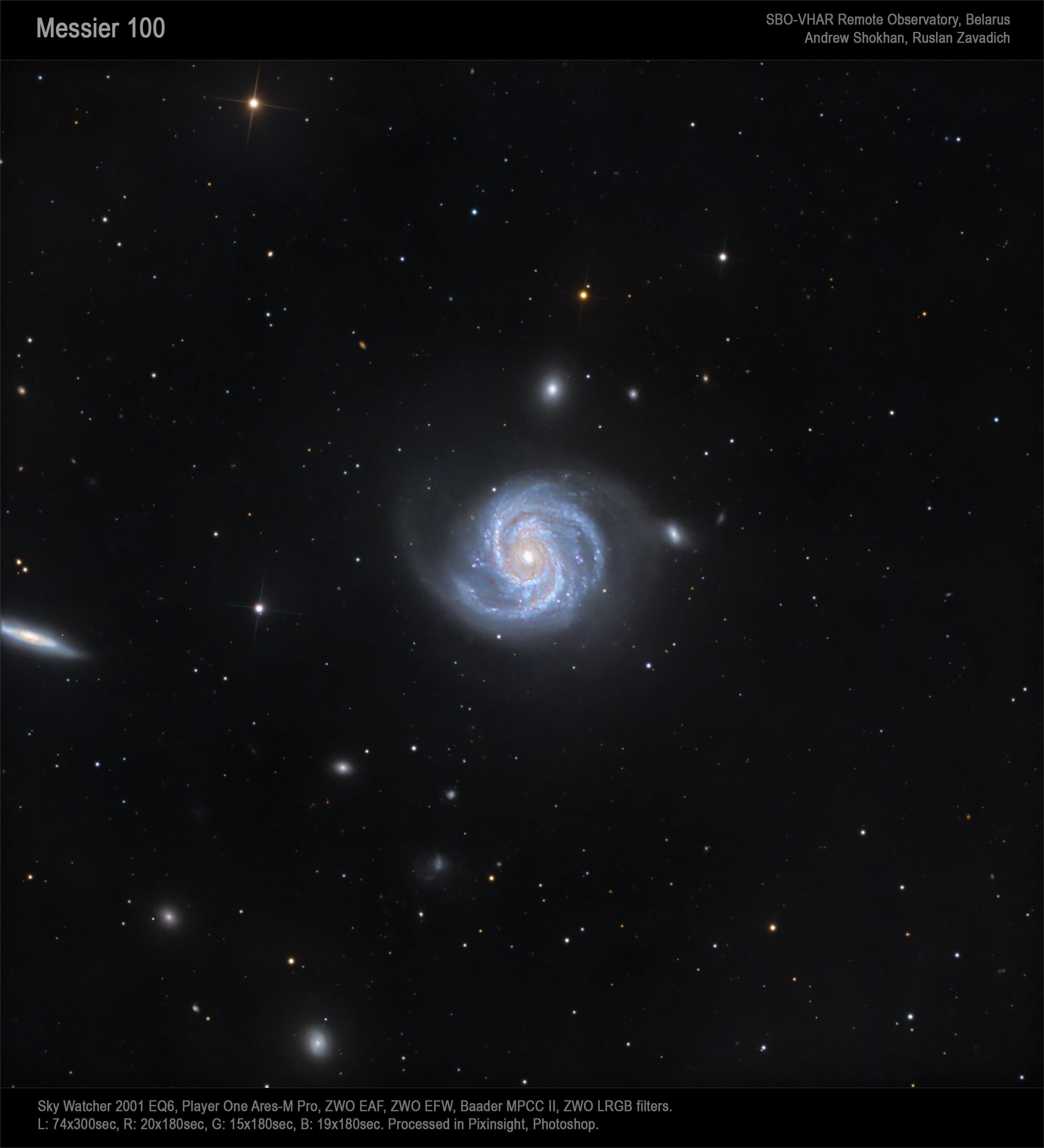 Галактика М100 от нас с Sidewinder. Наверное, последний снимок на плеер в Ньютон. После него плеер был переставлен на ШК. Все детальки в подписи...