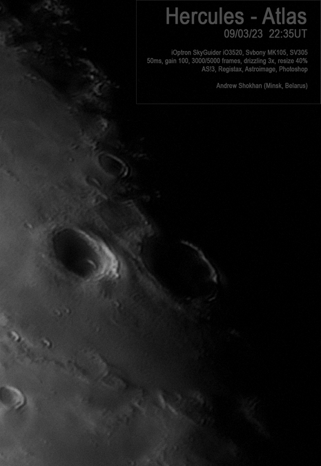 Тех. детали: 6 мая 2022, 20:18-20:30 UT, TAL-250K на EQ-6 Pro, ZWO ASI290MM (gain 61, 33 ms, 30 fps), Astronomik IR-pass 742 nm+. Сложено 100 кадров из 1000, деконволюция в AstraImage, PTGui.