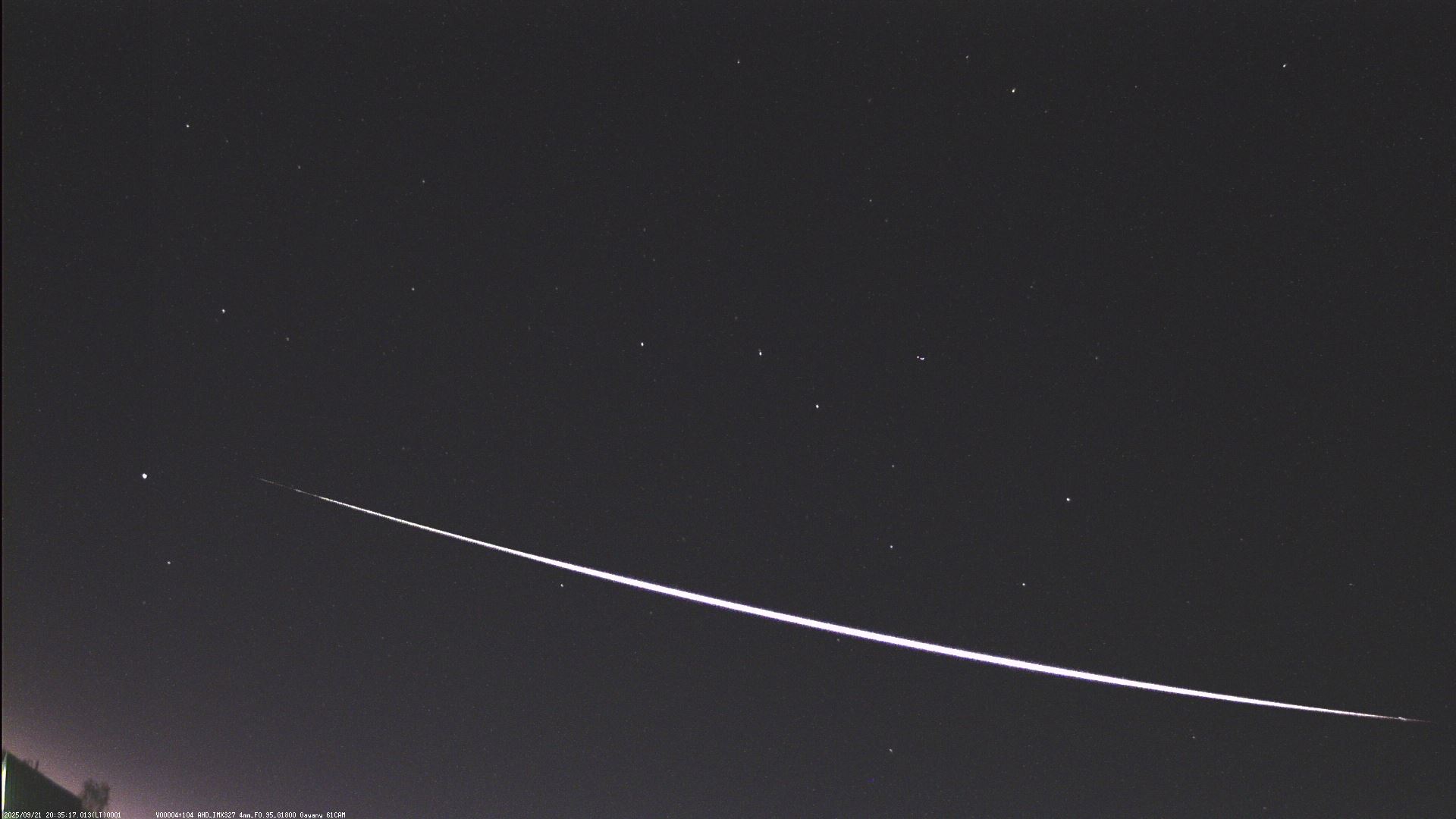 2025-09-21 20:35:17 LT. Длительность полета 18 секунд (!). Не грейзер, загорелся на 82 км, погас на 45 км. Развалился на 4 части. Угол входа в атмосферу 12 гр.