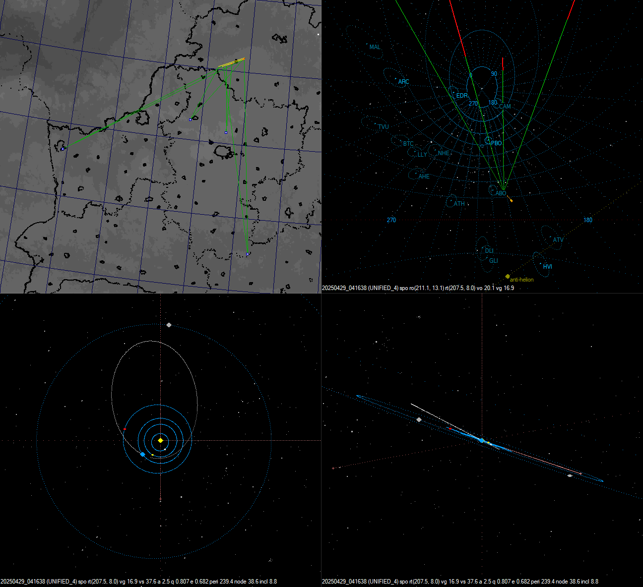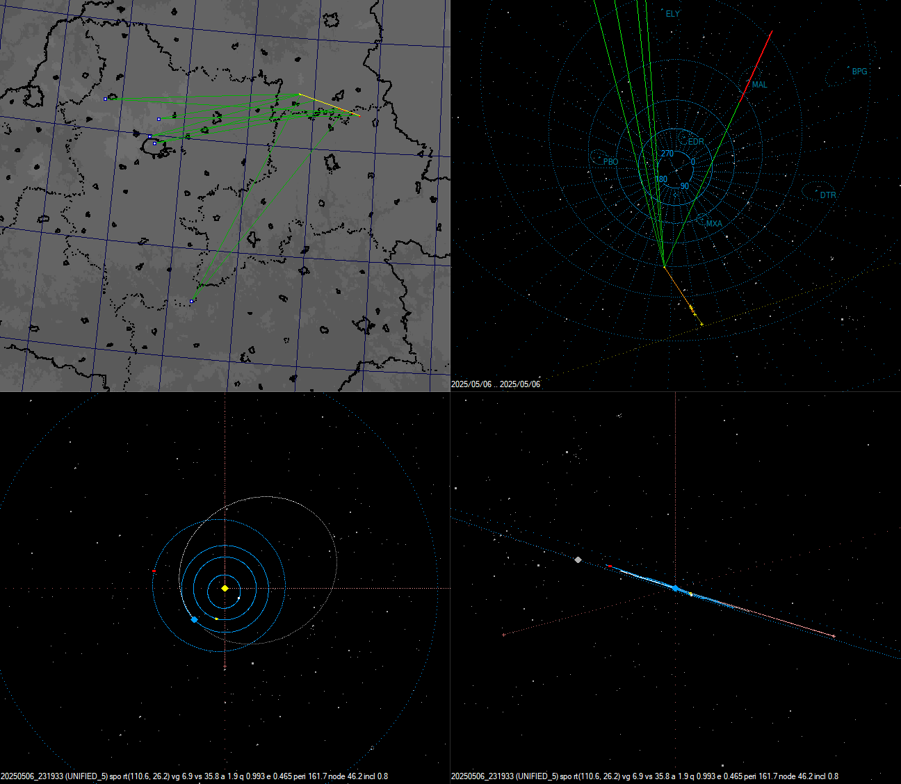 Кстати, по своим характеристикам этот болид в целом очень похож на другой, который пролетел несколькими днями ранее (2025-05-01 00:31:09 LT). Они оба пролетели примерно над одной и той же местностью неподалеку от Орши.