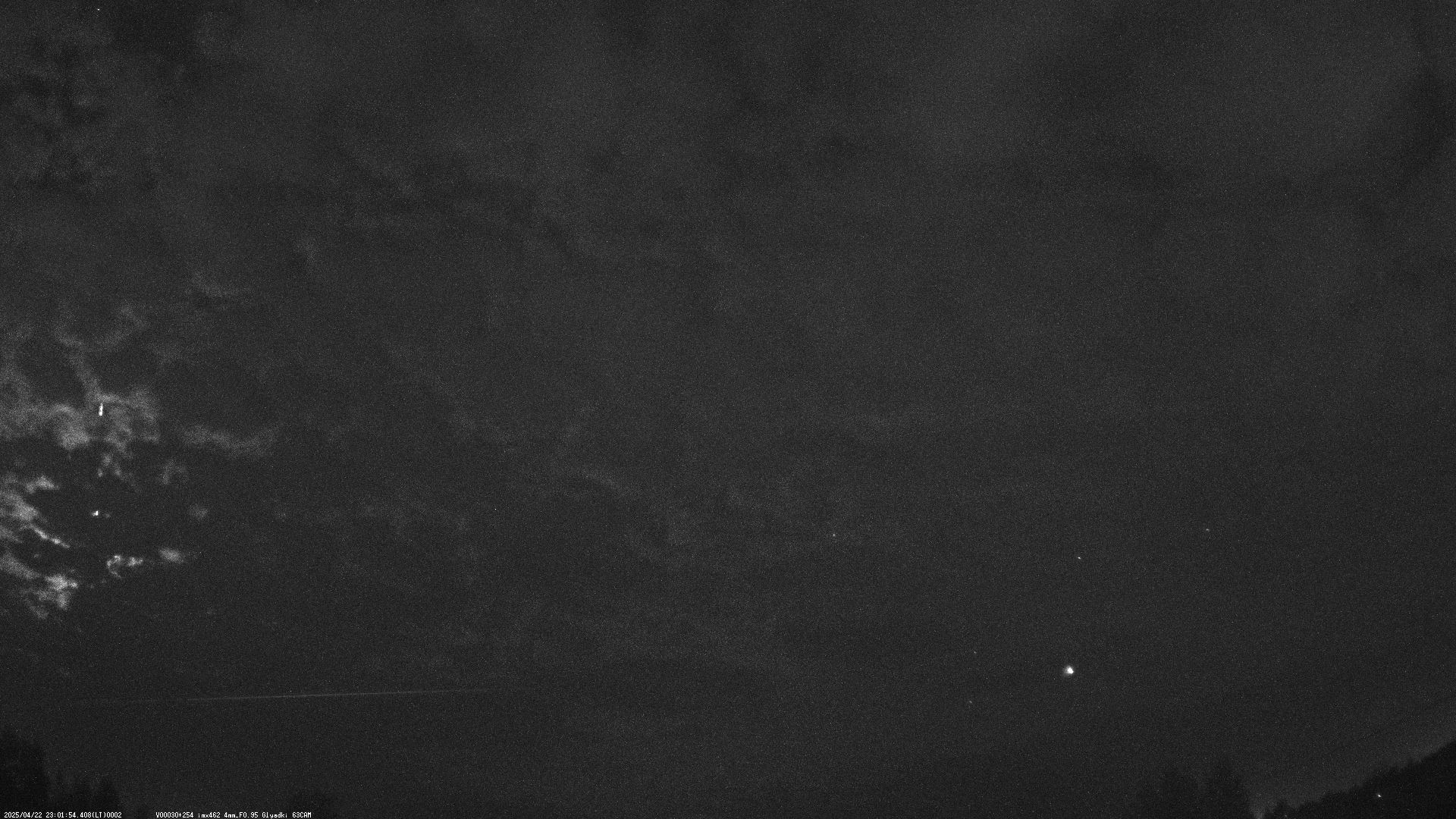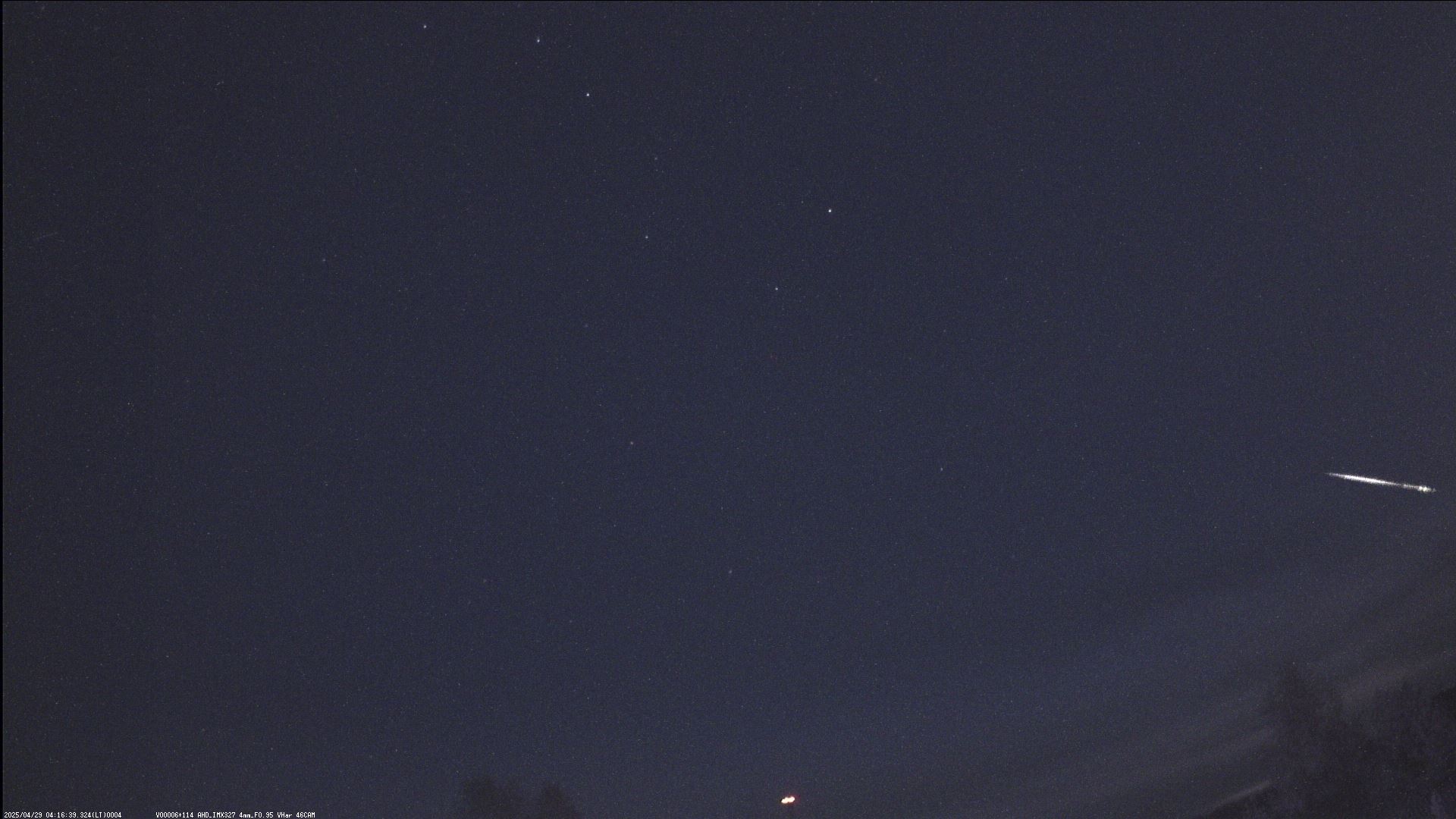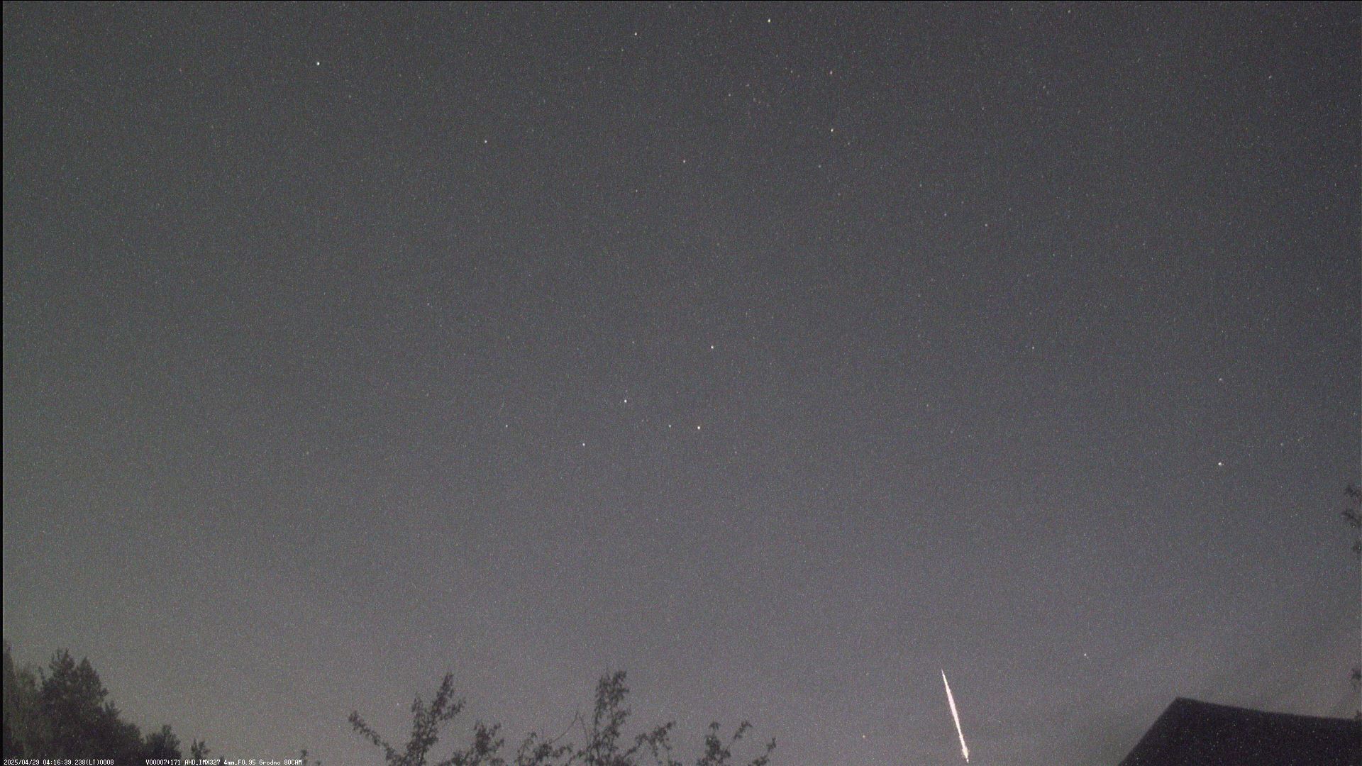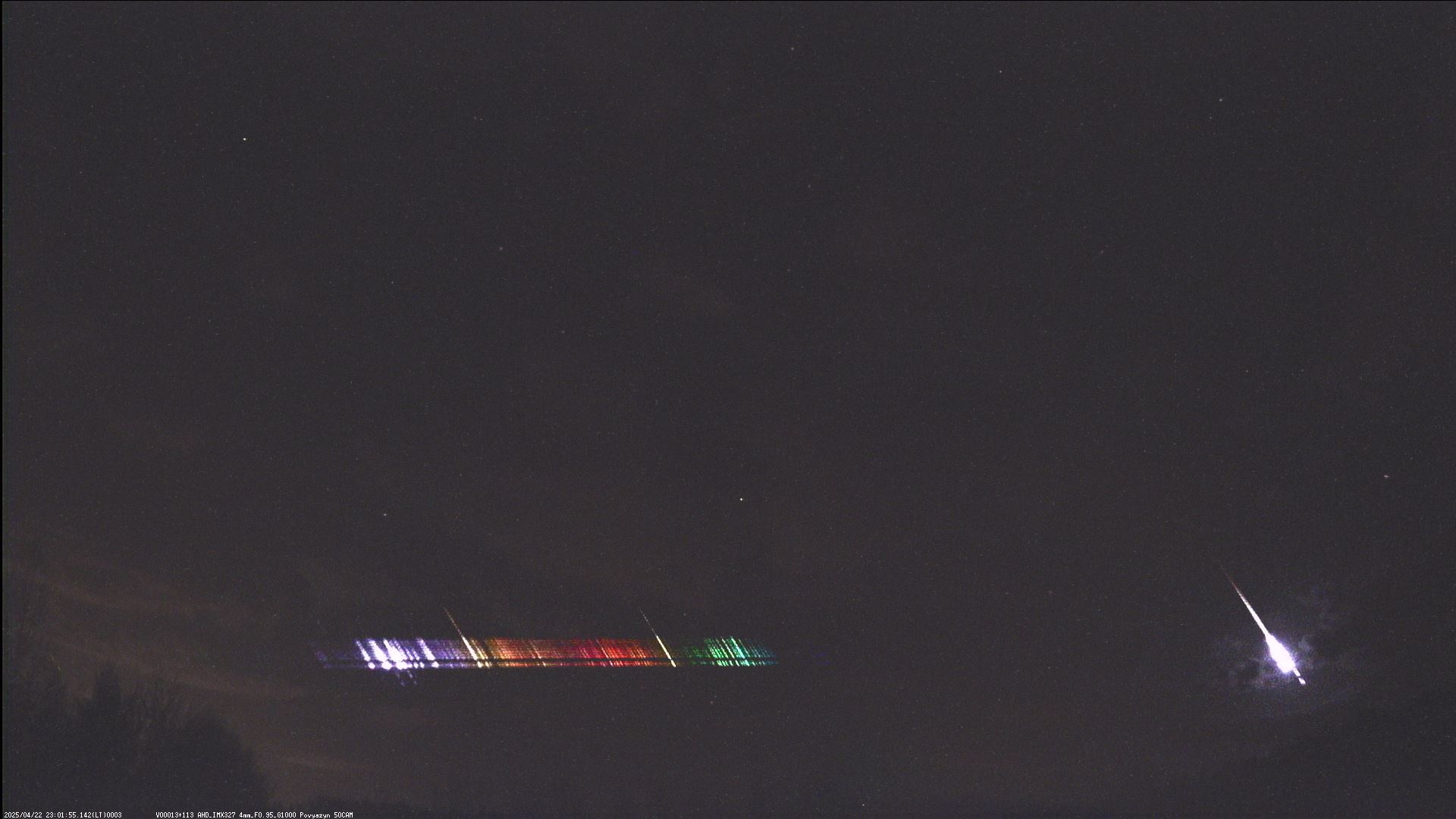 22/04/25 патрульная олл-скай камера зафиксировала окончание полета болида (правый верхний угол снимка). Время пролета 20:01 UT.