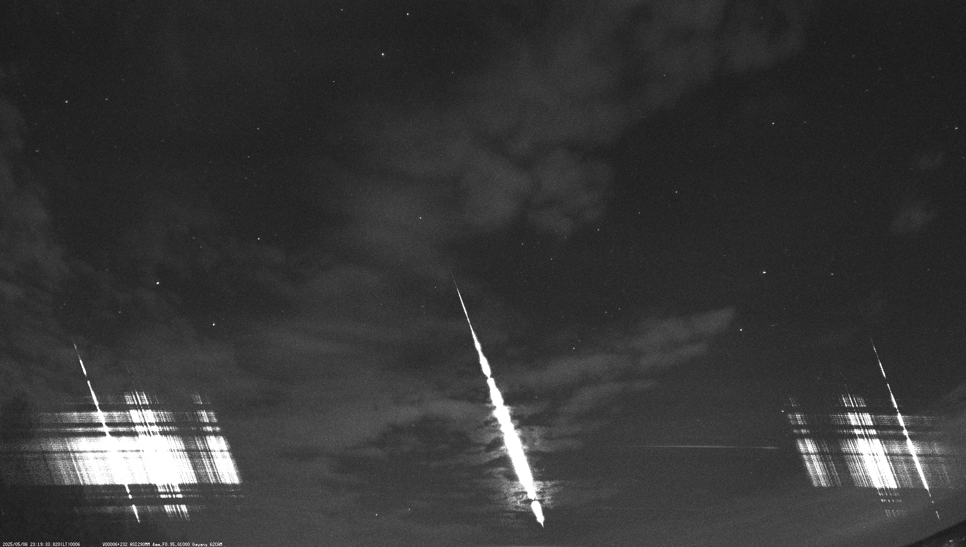 В ночь с 6 на 7 мая фотокамера зарегистрировала начало полета болида в 20.19 UT . По ощущениям примерно -4 или -5. Этот же болид увидел на записях камеры видеонаблюдения с яркостью около -3 величины. UFO причислила его к SPO. Кстати, а куда подевались эта-Аквариды? Уже которую ночь их не фиксирует видеокамера ))