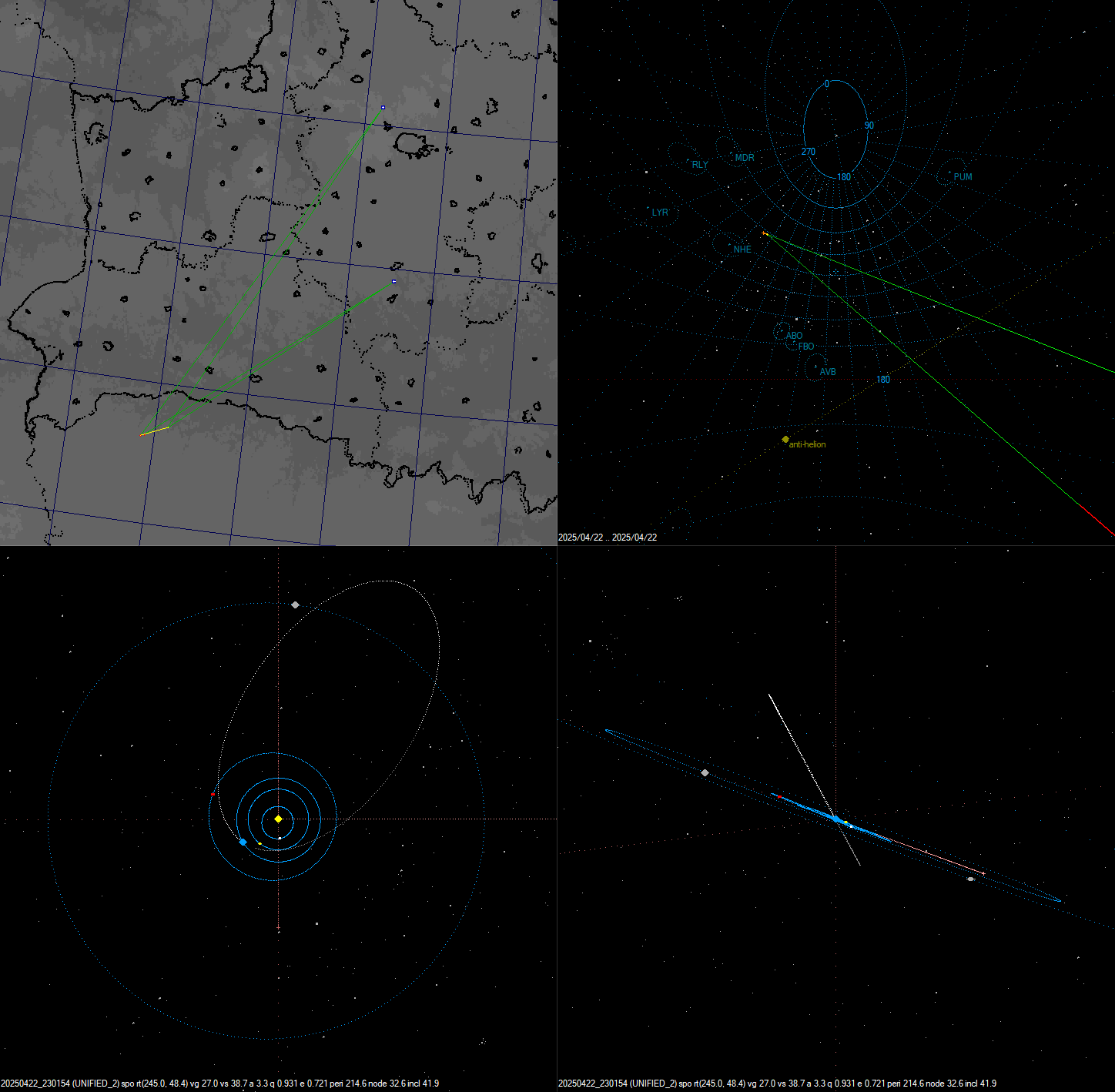 2025-02-25 03:26:19 LT. Очень медленный метеор со скоростью около Vg=12km/s, пришедший из области близкой к anti-helion.
