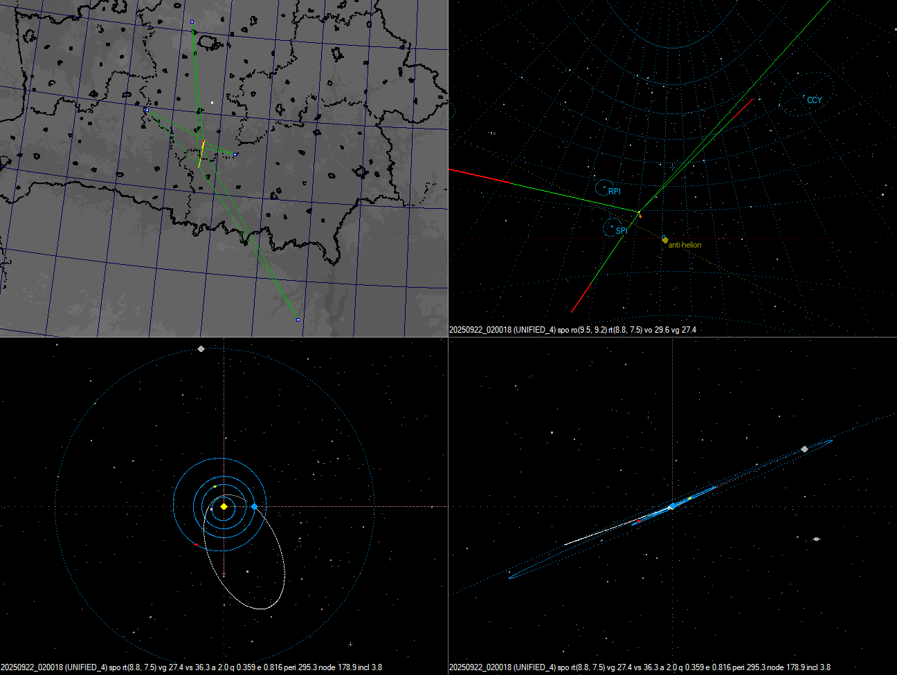 Для "тонкого" разбора полетов в UFOOrbit я скомпилировал каталог _IAUMDC_2025-09.csv, который повторяет данные IAU MDC на сегодняшний день (включая замеченный нами новый поток 2025-Q1). Этот каталог неудобен для повседневного использования, т.к. содержит множество радиантов для каждого потока по числу записей в IAU MDC. Но когда есть подозрение на новый поток, он обязателен для проверки соответствий с текущей базой IAU MDC.