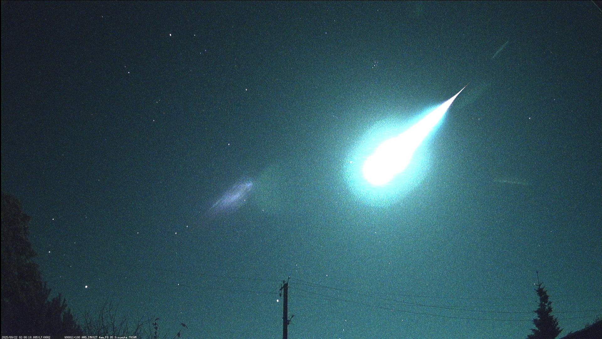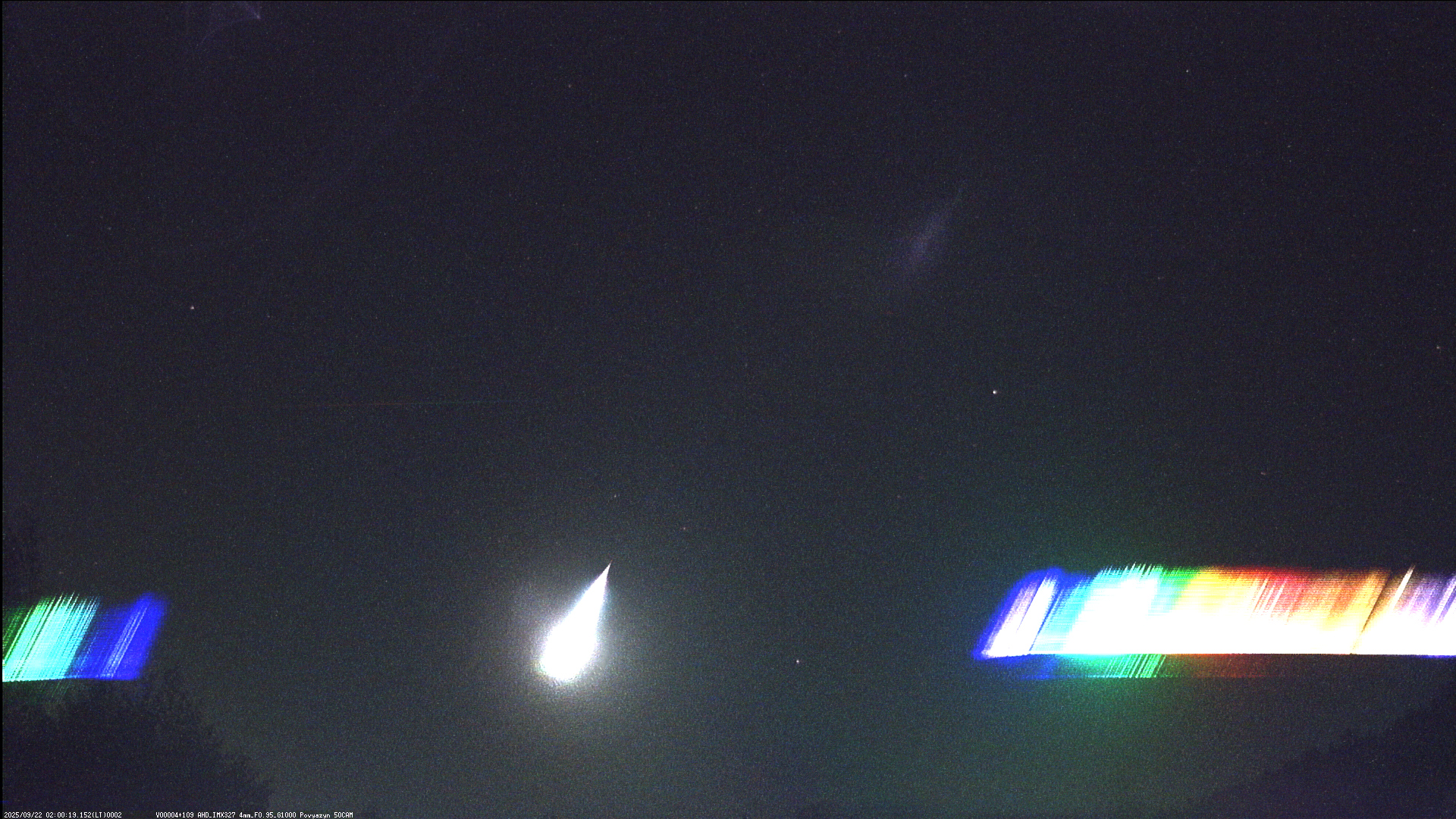 22 сентября 2025 года в 02:00:18 LT примерно над Солигорском пролетел очень яркий болид порядка -10m. В момент пролета местность ярко осветилась, а небо приобрело голубой цвет. Загорелся он на высоте 96км и резко погас на 57км. Полностью сгорел в атмосфере, падения не было. Спектр показал, что это был железный метеороид (!). Таких ярких железных тел ранее мы еще не фиксировали.