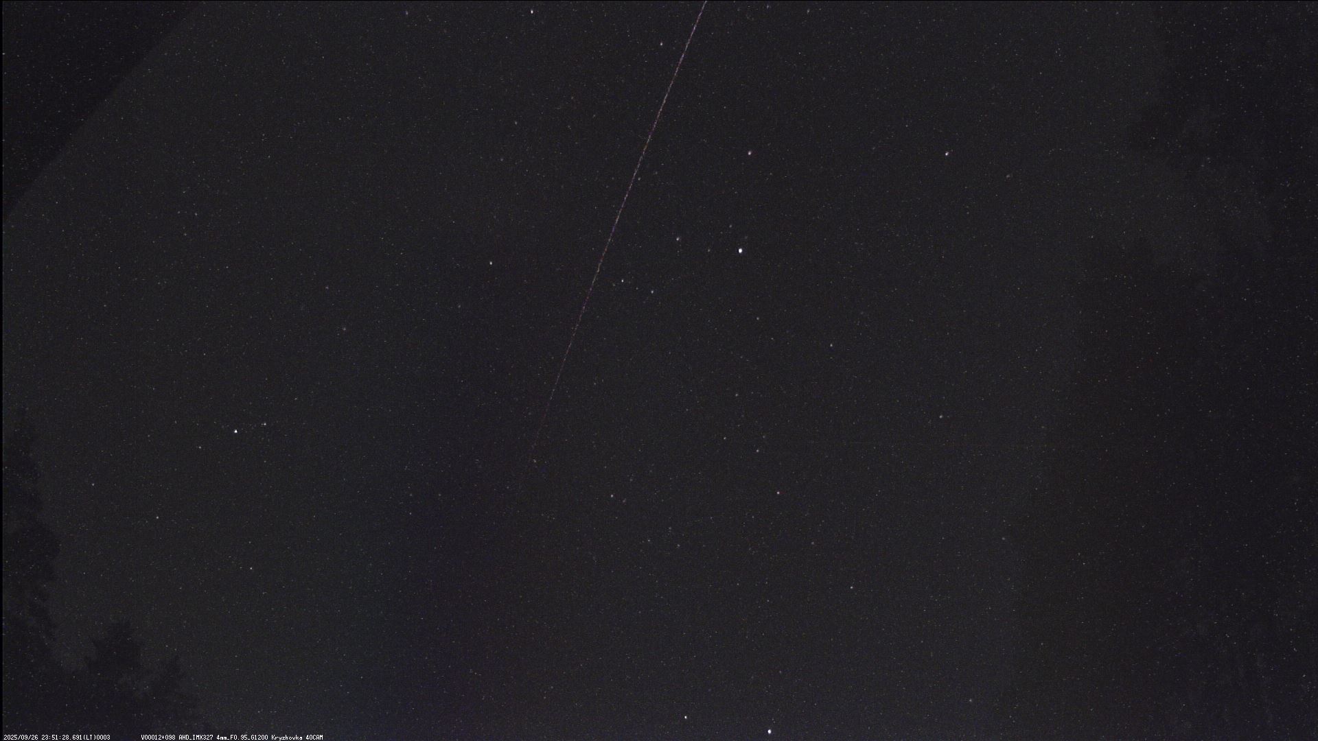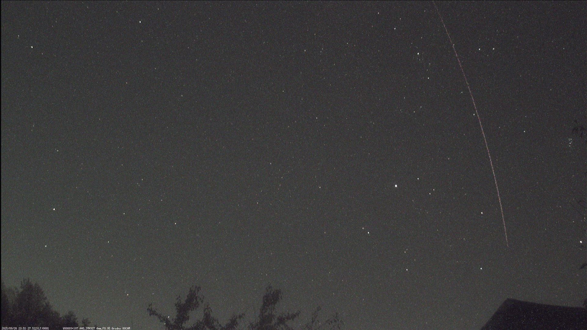 К сожалению,моя патрульная фотокамера засняла только начало полета болида на стыке Пегаса и Рыб. Яркость этого участка траектории около +1 или 0 величины, т.е. видно очень слабо, при потоковом просмотре снимков можно и не заметить.