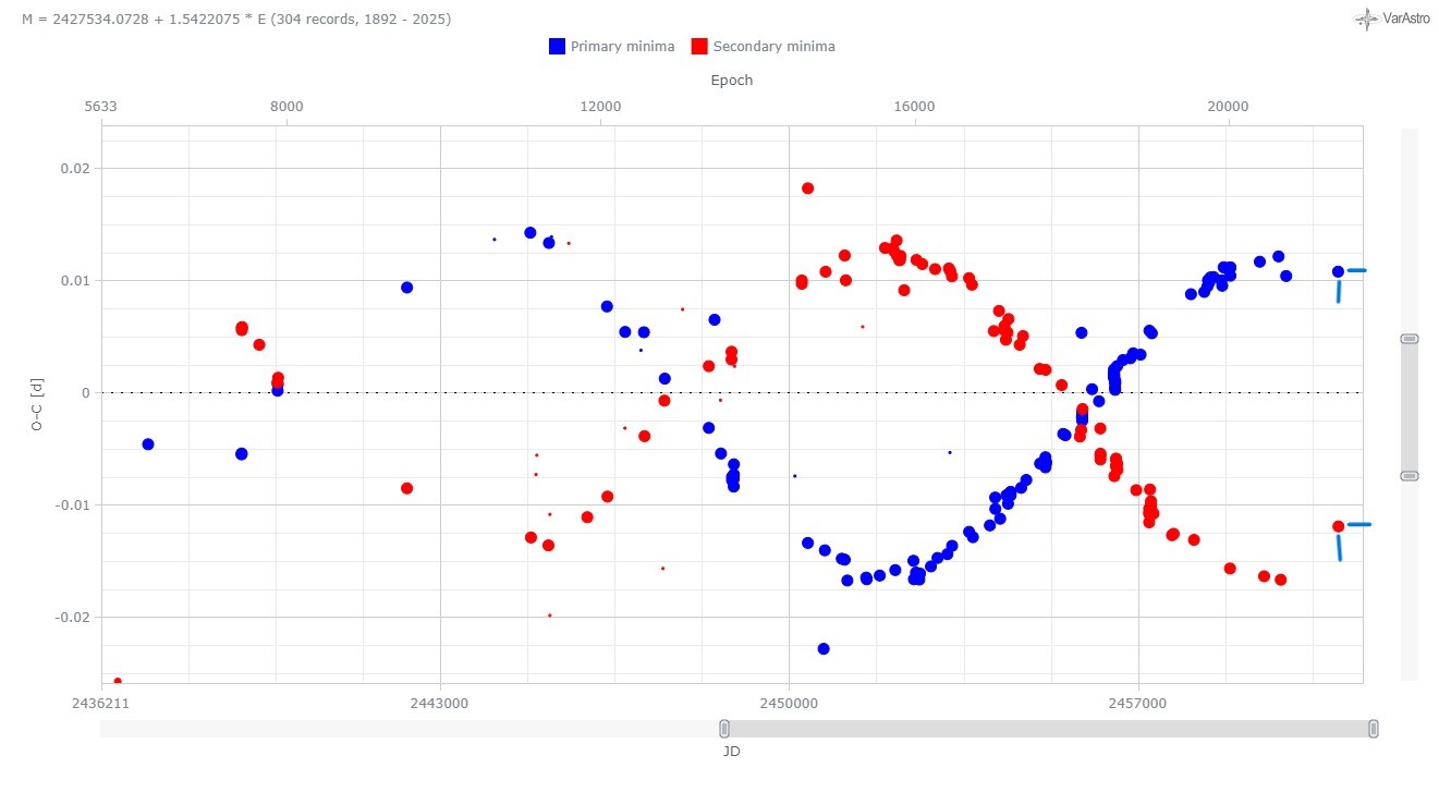 К сожалению, на чешском сайте нет данных AAVSO за 2024-25 годы, иначе точки лежали бы гораздо плотней.
