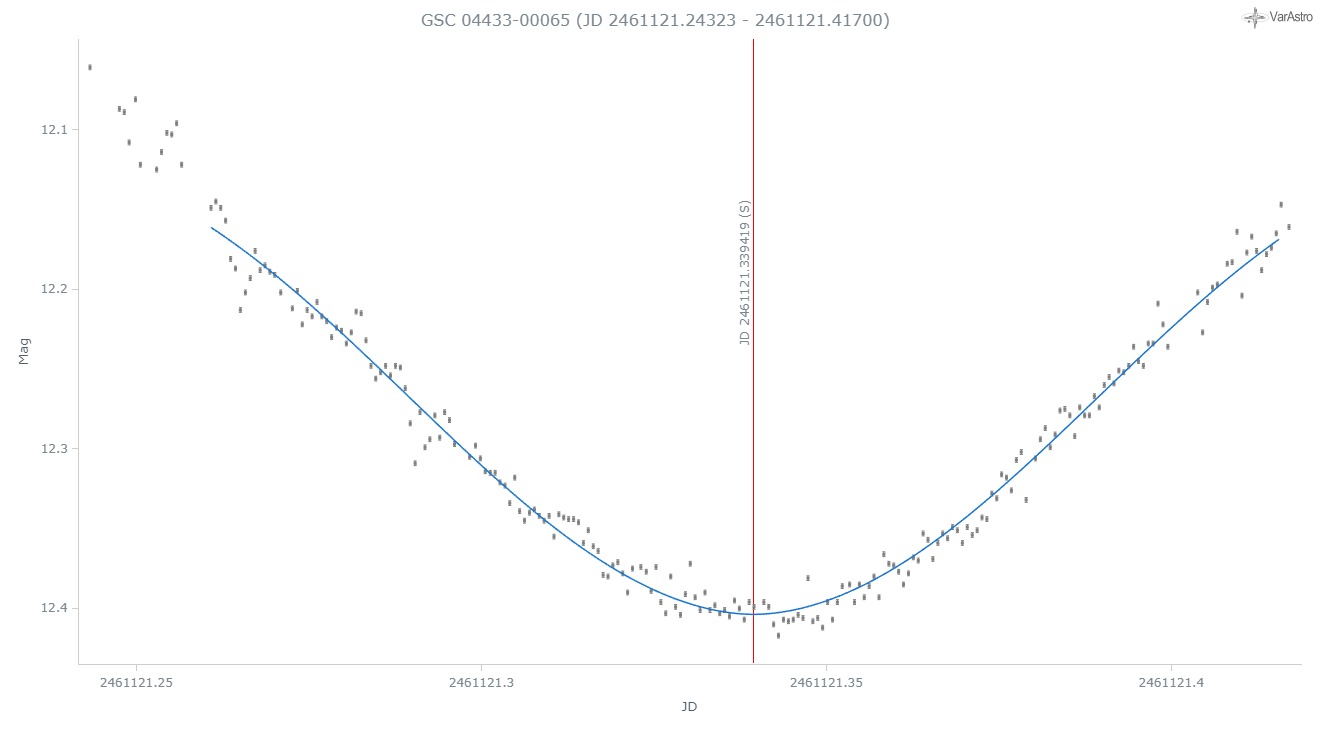 Худо-бедно отснял фрагмент вторичного минимума весьма эксцентричного алголя GSC 04433-00065 с периодом более 26d.